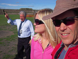 Finally at the pyramids, Edmundo delivered more lessons.  He downplayed Aztec sacrifice, instead focusing on Indian numerology.  Edmundo explained the mysterious power of the number four in Aztec culture.  We learned equations like the square root of the sun divided by the full moon multiplied by four-year calendars subtracted by spendy trinket shops… always results in the magical number four!   Four!  Four!  Four!  Time after time, Edmundo held up four fingers in illustration, just like Sesame Street.  Afterwards, FOUR became our quiet mantra and universal response.
