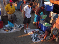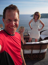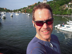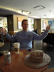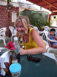 Fortunately our hotel room had powerful air-conditioning plus a hot-tub, or rather a cold-tub in our case.  We found the place crunchy but immaculate, the locals hospitable and laid-back.  We adapted quickly, lounging and eating incredible jumbo shrimp, fresh tropical fruit, and piles of guacamole.  It was too hot to do much more.  Yet Jim jogged through town each day, apparently making a name for himself--we can only guess what that was. His ordering of four-fingered hot coffee after a sweaty jog likely added to his fame.