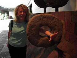 Already a maze of paperwork, Mexico City’s airport added a new station for Swine Flu screening.  We surveyed the Spanish survey.  Did we suffer coughs, fevers, aches, or other words I never learned in Spanish class?   We knew enough Spanish to mark NO, NO, NO!  We walked through heat sensors for fever detection.  Jim and I scanned white, but Annie’s airport anxiety pumped her yellow..  Fortunately nobody stopped her.  Who knows where they would have taken Annie, or what they would have done with her?   We were happy not to learn.