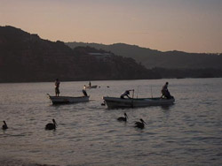 Jim and Annie resolved to swim with the dolphins in Ixtapa, a town filled mainly with vacationing Mexican families.  School had just released; Swine Flu closures had postponed summer vacation three weeks.  We experienced our worst price-gouging at the dolphin pool.  First, they post no pricing.  They quote Americans FOUR times the cost in dollars to obscure their peso rate for Mexicans.  When we asked for peso pricing, they stopped to think--it takes a minute to convert those inflated dollar amounts.  They prohibit personal photography, charging $8 per photo and $80 per video.  I obeyed the rules, but most Mexicans ignored them, even with their discounted rates.  Jim and Annie loved the dolphins, but we left without a single photo.  We gladly returned to Zihuatanejo that evening.