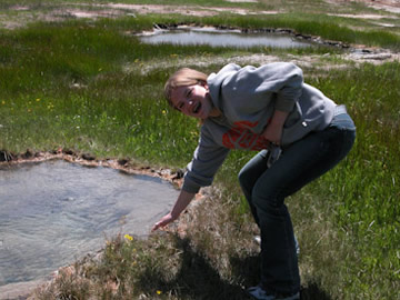 Outside the geyser’s set to erupt again at any moment, but I’ve already witnessed it multiple times, hanging out in the neighborhood so much. Instead, I’m ready for a hot shower and a date with Meriwether Lewis. Jim walks me back to our Snow Lodge Cabin, but he and Annie can’t seem to leave the Inn lobby quite yet this evening. I understand.
